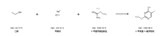 1.通过乙醇、甲醇钠和O-甲基异脲盐酸盐合成2-甲氧基-5-氟尿嘧啶