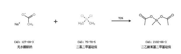 1.通过无水醋酸钠和二氯二甲基硅烷合成二乙酰氧基二甲基硅烷,收率约70%;