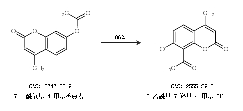 2.通过7-乙酰氧基-4-甲基香豆素合成8-乙酰基-7-羟基-4-甲基-2H-1-苯并吡喃-2-酮,收率约86%;