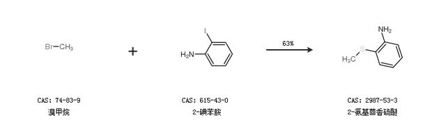 1.通过溴甲烷和2-碘苯胺合成2-氨基茴香硫醚,收率约63%;