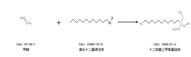 2.通过甲醇和溴化十二基镁溶液合成十二烷基三甲氧基硅烷