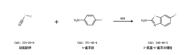 1.通过硫氰酸钾和4-氟苯胺合成2-氨基-6-氟苯并噻唑,收率约88%;