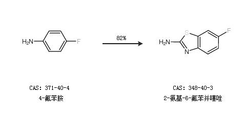 2.通过4-氟苯胺合成2-氨基-6-氟苯并噻唑,收率约82%;