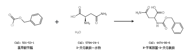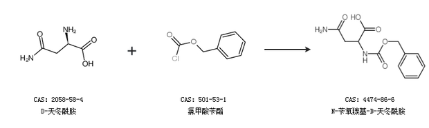 1.通过D-天冬酰胺和氯甲酸苄酯合成N-苄氧羰基-D-天冬酰胺