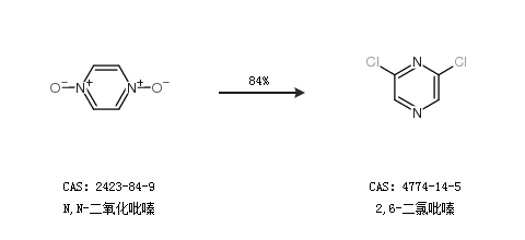 1.通过N,N-二氧化吡嗪合成2,6-二氯吡嗪,收率约84%;