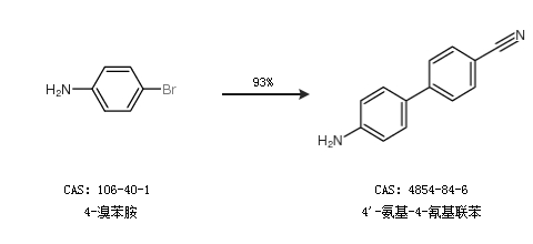 2.通过4-溴苯胺合成4''-氨基-4-氰基联苯,收率约93%;