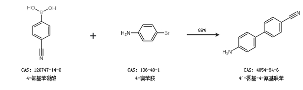 1.通过4-氰基苯硼酸和4-溴苯胺合成4''-氨基-4-氰基联苯,收率约86%;