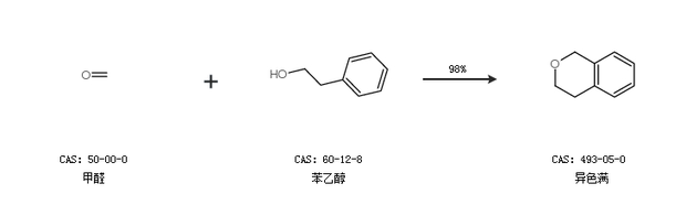 1.通过甲醛和苯乙醇合成异色满,收率约98%;