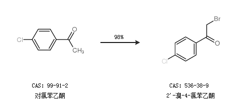 2.通过对氯苯乙酮合成2''-溴-4-氯苯乙酮,收率约98%;