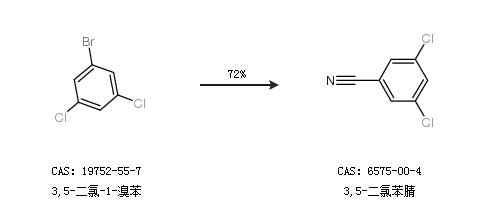 1.通过3,5-二氯-1-溴苯合成3,5-二氯苯腈,收率约72%;