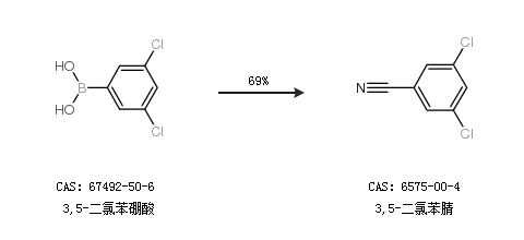 2.通过3,5-二氯苯硼酸合成3,5-二氯苯腈,收率约69%;