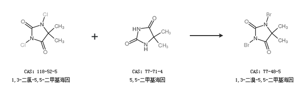 1.通过5,5-二甲基海因合成1,3-二溴-5,5-二甲基海因,收率约99%;
