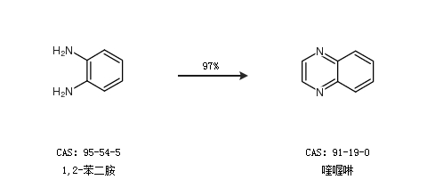 1.通过1,2-苯二胺合成喹喔啉,收率约97%;