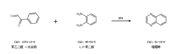 2.通过苯乙二醛 一水合物和1,2-苯二胺合成喹喔啉,收率约95%;