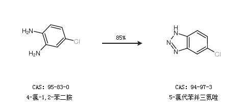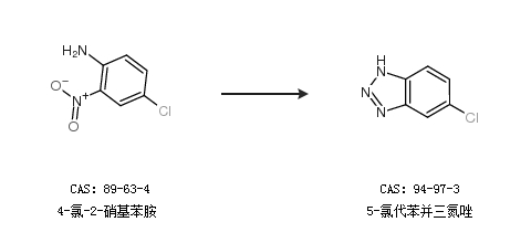 1.通过4-氯-1,2-苯二胺合成5-氯代苯并三氮唑,收率约85%;