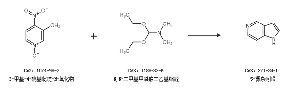 2.通过3-甲基-4-硝基吡啶-N-氧化物和N,N-二甲基甲酰胺二乙基缩醛合成5-氮杂吲哚