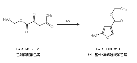 1.通过乙酰丙酮酸乙酯合成5-甲基-3-异噁唑羧酸乙酯,收率约82%;