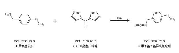 1.通过4-甲氧基苄胺和N,N''-硫羰基二咪唑合成4-甲氧基苄基异硫氰酸酯,收率约85%;