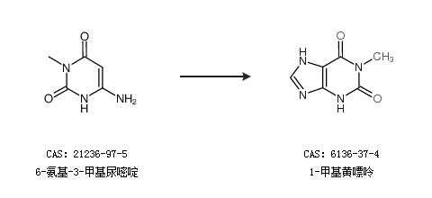 1.通过6-氨基-3-甲基尿嘧啶合成1-甲基黄嘌呤