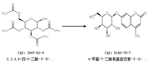 2.通过2,3,4,6-四-O-乙酰-β-D-吡喃葡萄糖合成4-甲基-7-乙酰氧基香豆素-β-D-吡喃半乳糖苷
