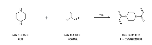 1.通过哌嗪和丙烯酰氯合成1,4-二丙烯酰基哌嗪,收率约71%;