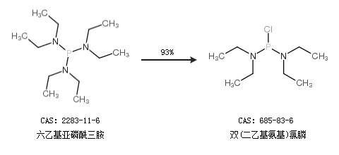 2.通过六乙基亚磷酰三胺合成双(二乙基氨基)氯膦,收率约93%;