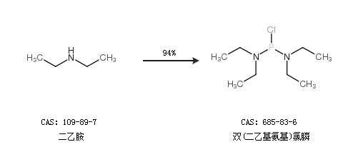 1.通过二乙胺合成双(二乙基氨基)氯膦,收率约94%;