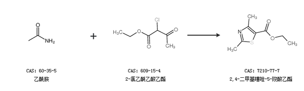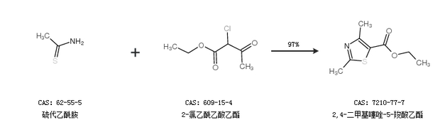 2.通过乙酰胺和2-氯乙酰乙酸乙酯合成2,4-二甲基噻唑-5-羧酸乙酯