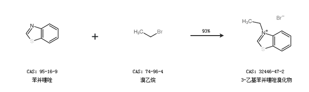 1.通过苯并噻唑和溴乙烷合成3-乙基苯并噻唑溴化物,收率约93%;