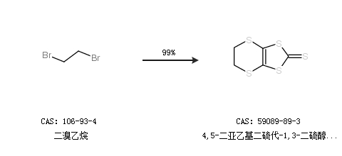2.通过二溴乙烷合成4,5-二亚乙基二硫代-1,3-二硫醇-2-硫酮,收率约99%;