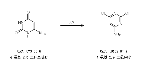 1.通过4-氨基-2,6-二羟基嘧啶合成4-氨基-2,6-二氯嘧啶,收率约85%;