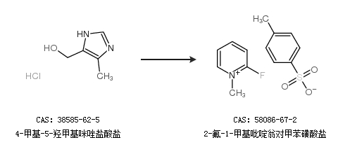 1.通过4-甲基-5-羟甲基咪唑盐酸盐合成2-氟-1-甲基吡啶翁对甲苯磺酸盐