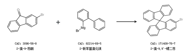 1.通过2-溴-9-芴酮和2-联苯基溴化镁合成2-溴-9,9''-螺二芴