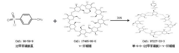 1.通过对甲苯磺酰氯和γ-环糊精合成单-6-O-(对甲苯磺酰)-γ-环糊精,收率约4%;