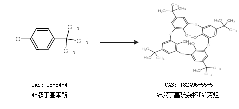 1.通过4-叔丁基苯酚合成4-叔丁基硫杂杯[4]芳烃,收率约75%;