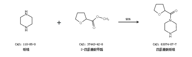 2.通过哌嗪和2-四氢糠酸甲酯合成四氢糠酰哌嗪,收率约90%;