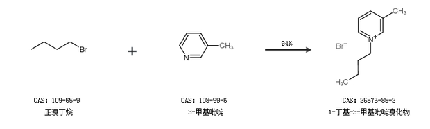 1.通过正溴丁烷和3-甲基吡啶合成1-丁基-3-甲基吡啶溴化物,收率约94%;