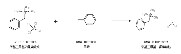 1.通过苄基三甲基四氯碘酸铵和甲苯合成苄基三甲基二氯碘酸铵