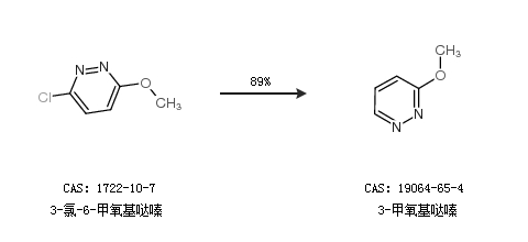 1.通过3-氯-6-甲氧基哒嗪合成3-甲氧基哒嗪,收率约89%;