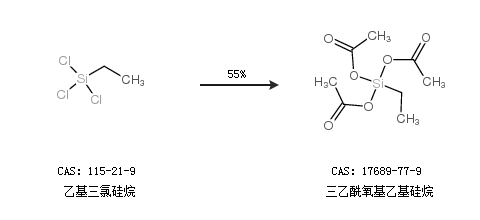 1.通过乙基三氯硅烷合成三乙酰氧基乙基硅烷,收率约55%;