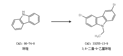 英文别名 3,6-dibromo-N-ethyl-carbazole;3,6-dibromo-9-ethyl-carbazole;3,6-Dibromo-9-ethyl-9H-carbazole;3,6-DibroMo-9-ethylcarbazole;9-ethyl-3,6-dibromo-9H-carbazole;9-ethyl-3,6-dibromocarbazole;