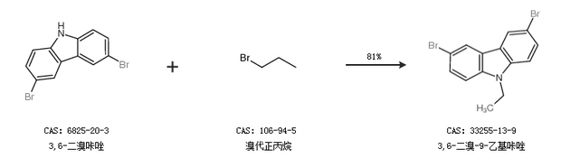 1.通过3,6-二溴咔唑和溴代正丙烷合成3,6-二溴-9-乙基咔唑,收率约81%;