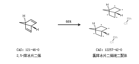 1.通过2,5-降冰片二烯合成氯降冰片二烯铑二聚体,收率约66%;