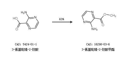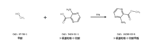 1.通过甲醇和3-氨基吡嗪-2-羧酸合成3-氨基吡嗪-2-羧酸甲酯,收率约77%;