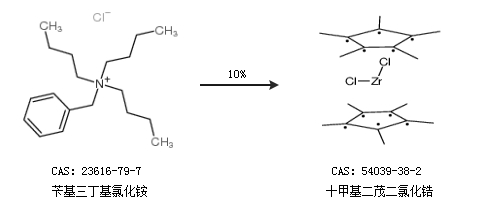 1.通过苄基三丁基氯化铵合成十甲基二茂二氯化锆,收率约10%;
