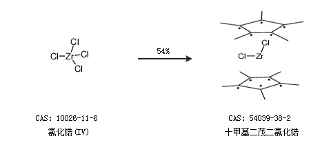 2.通过氯化锆(IV)合成十甲基二茂二氯化锆,收率约54%;