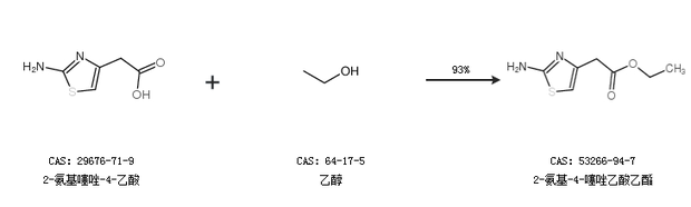 1.通过2-氨基噻唑-4-乙酸和乙醇合成2-氨基-4-噻唑乙酸乙酯,收率约93%;