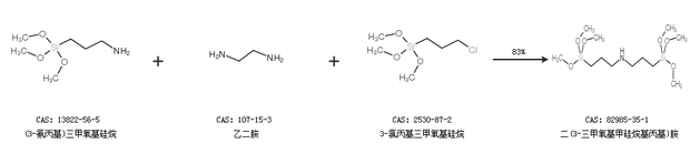 2.通过(3-氨丙基)三甲氧基硅烷、乙二胺和3-氯丙基三甲氧基硅烷合成二(3-三甲氧基甲硅烷基丙基)胺,收率约83%;
