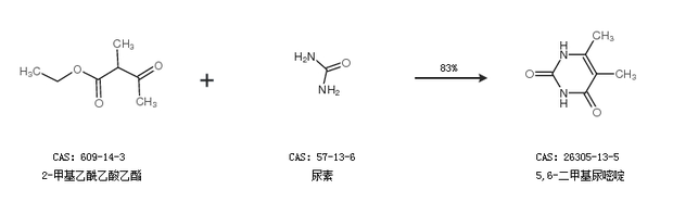 1.通过2-甲基乙酰乙酸乙酯和尿素合成5,6-二甲基尿嘧啶,收率约83%;