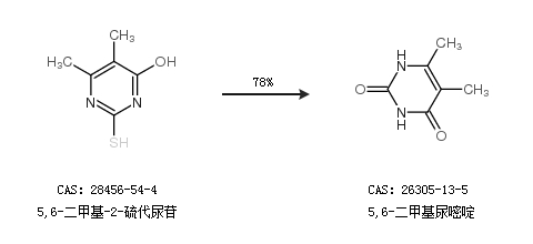 2.通过5,6-二甲基-2-硫代尿苷合成5,6-二甲基尿嘧啶,收率约78%;